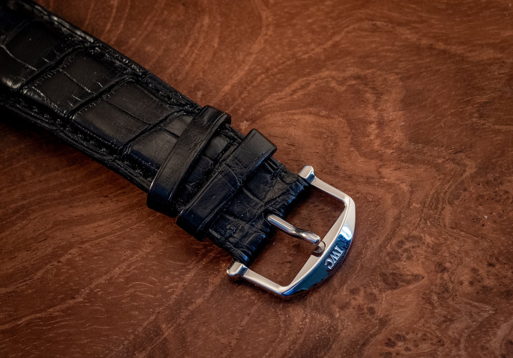 At its heart beats IWC’s manual-wind Caliber 98295 movement, visible through the sapphire crystal caseback. Known for its reliability and traditional architecture, this beautifully finished movement offers an impressive 8-day power reserve, making it as practical as it is elegant.