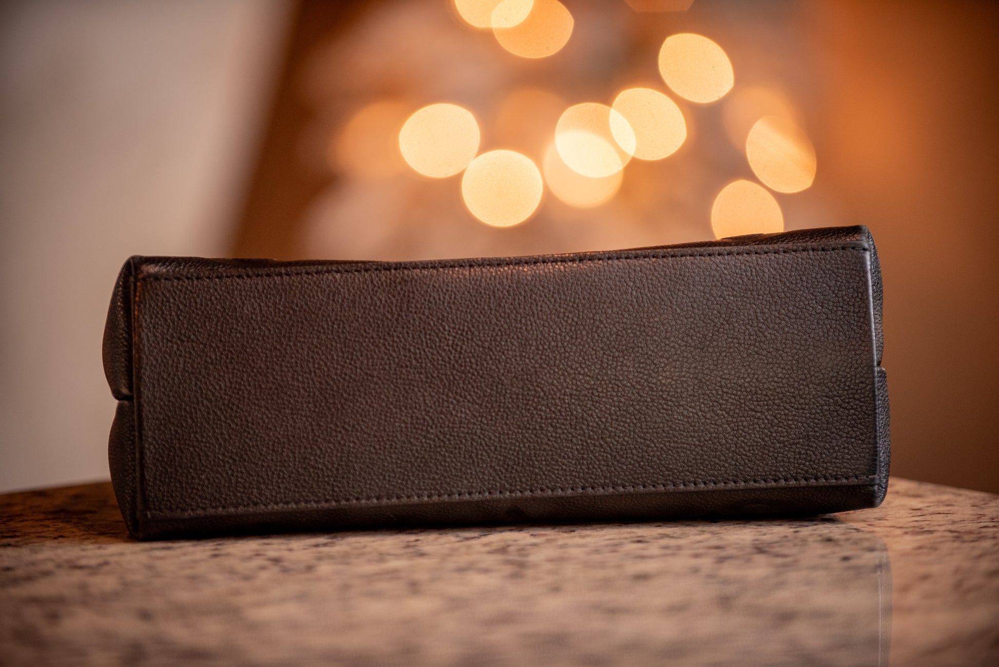 Designed for versatile wear, the Madeleine MM includes a rolled leather top handle for a classic carry as well as a detachable shoulder strap, allowing it to be worn comfortably on the shoulder or crossbody. Gold-tone hardware beautifully complements the rich black leather, elevating the bag’s overall presence.