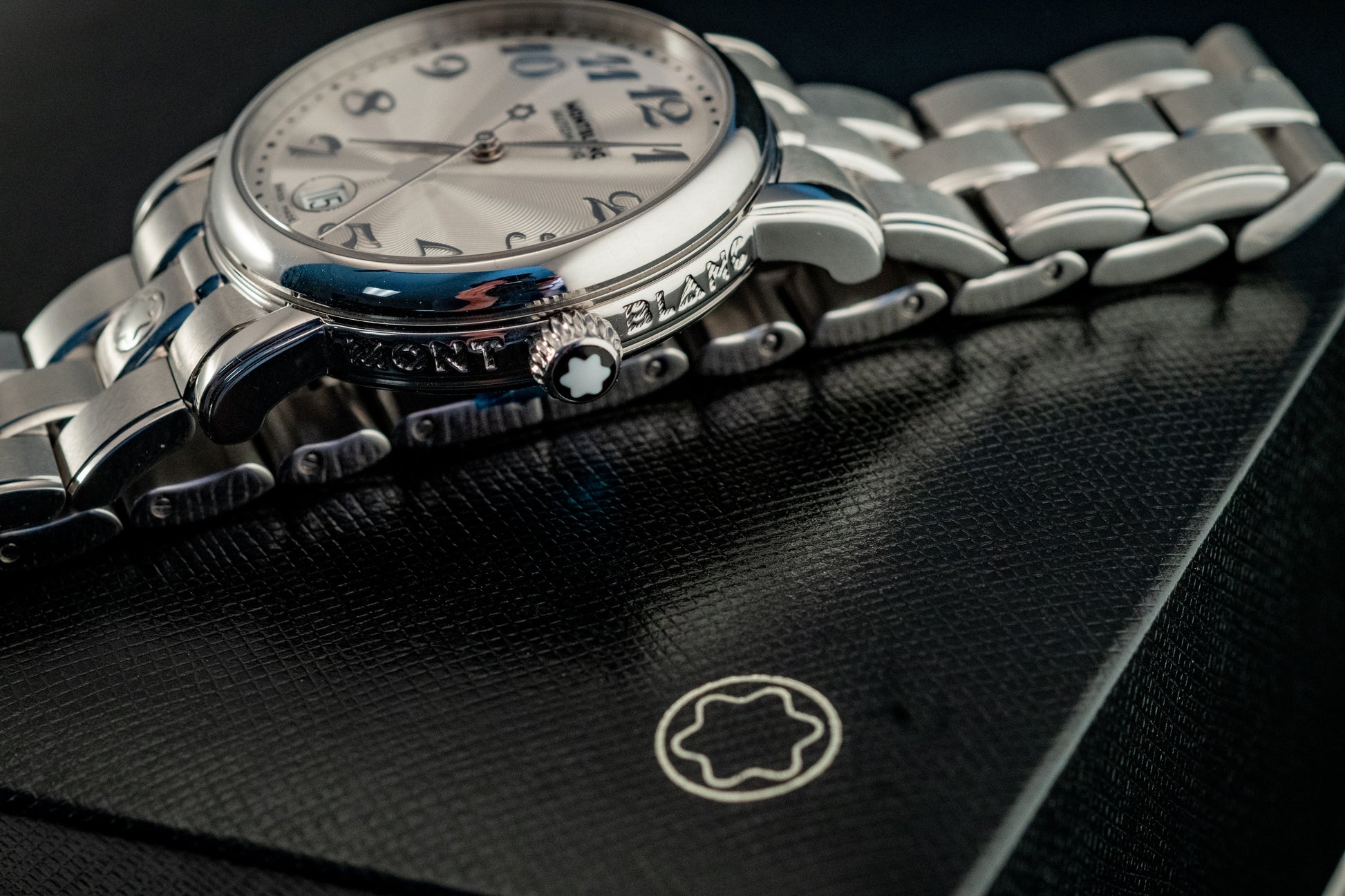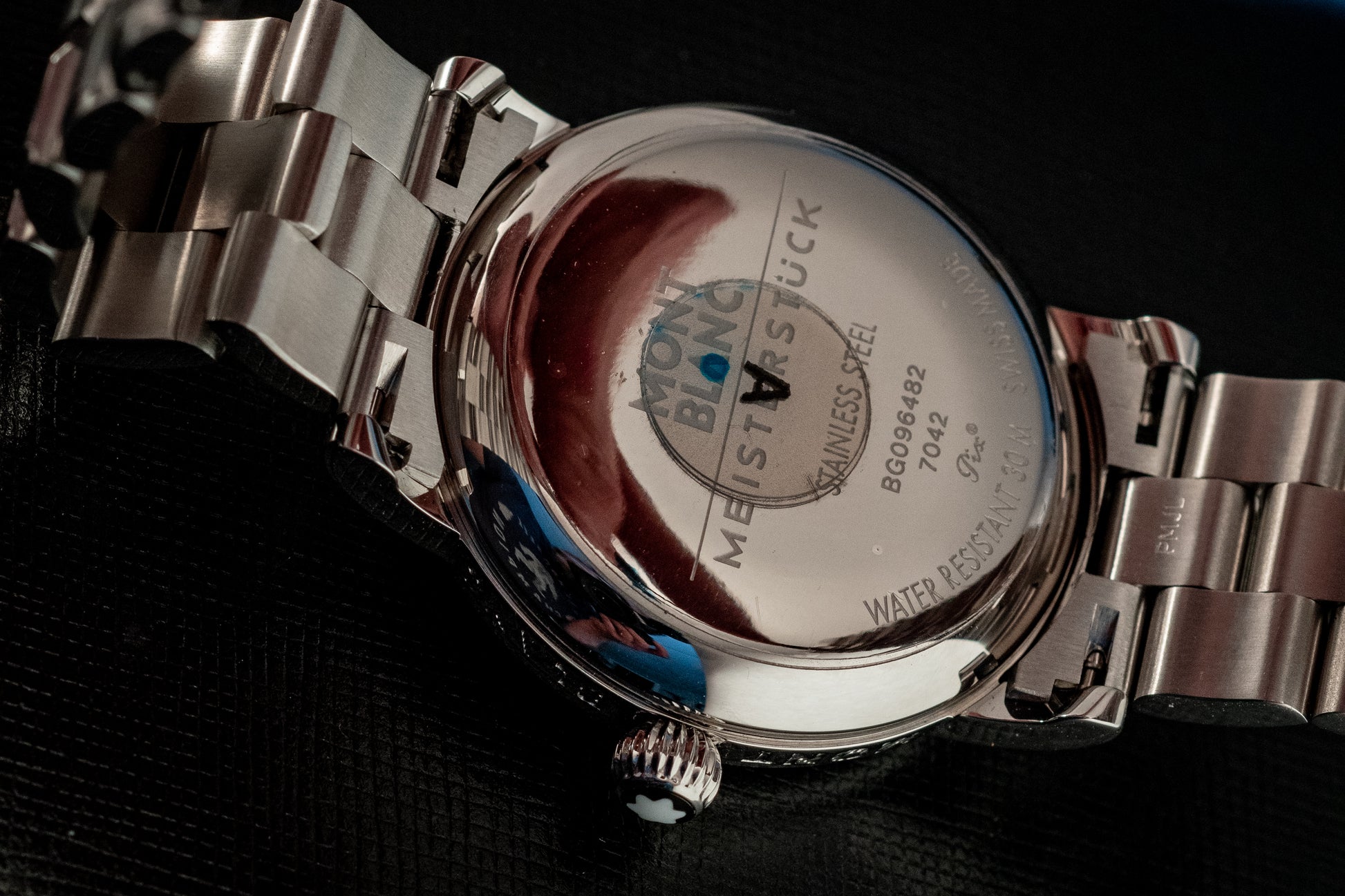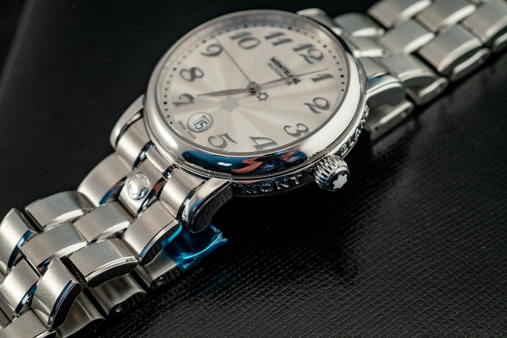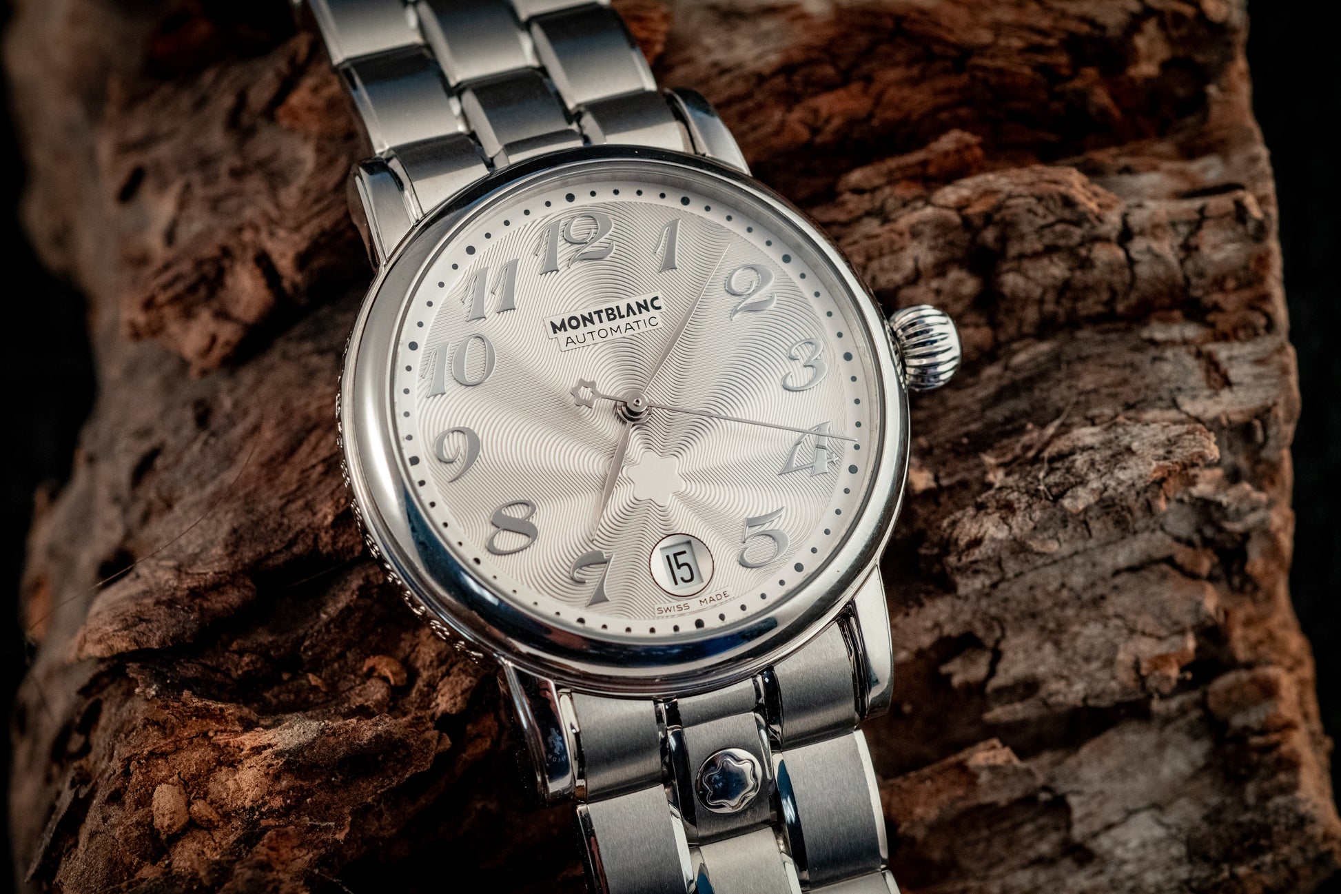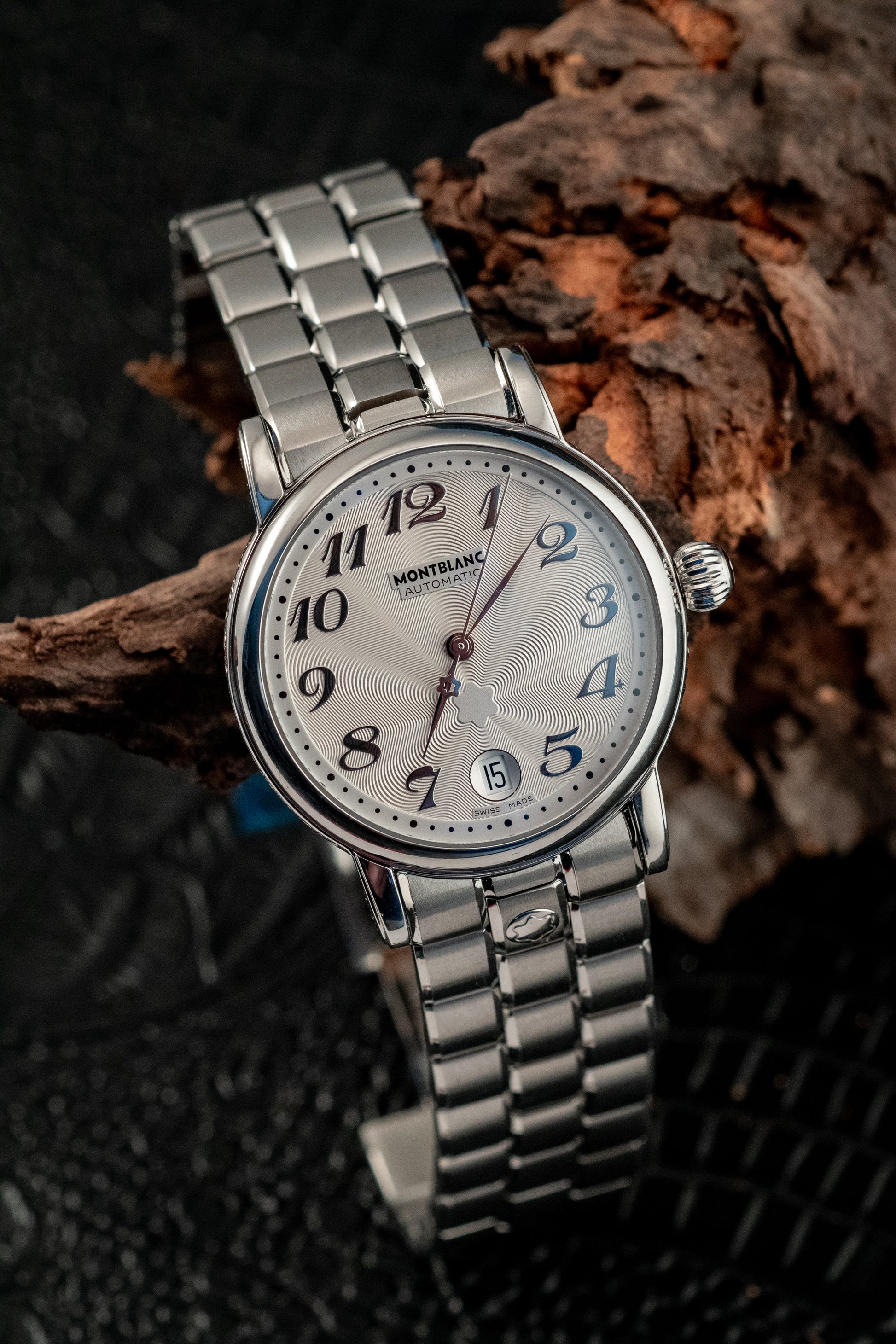 Powered by a Swiss automatic movement, the Meisterstück Star delivers reliable performance and smooth operation, visible through its transparent sapphire caseback. The stainless steel bracelet enhances both comfort and durability, while seamlessly complementing the watch’s refined aesthetic.