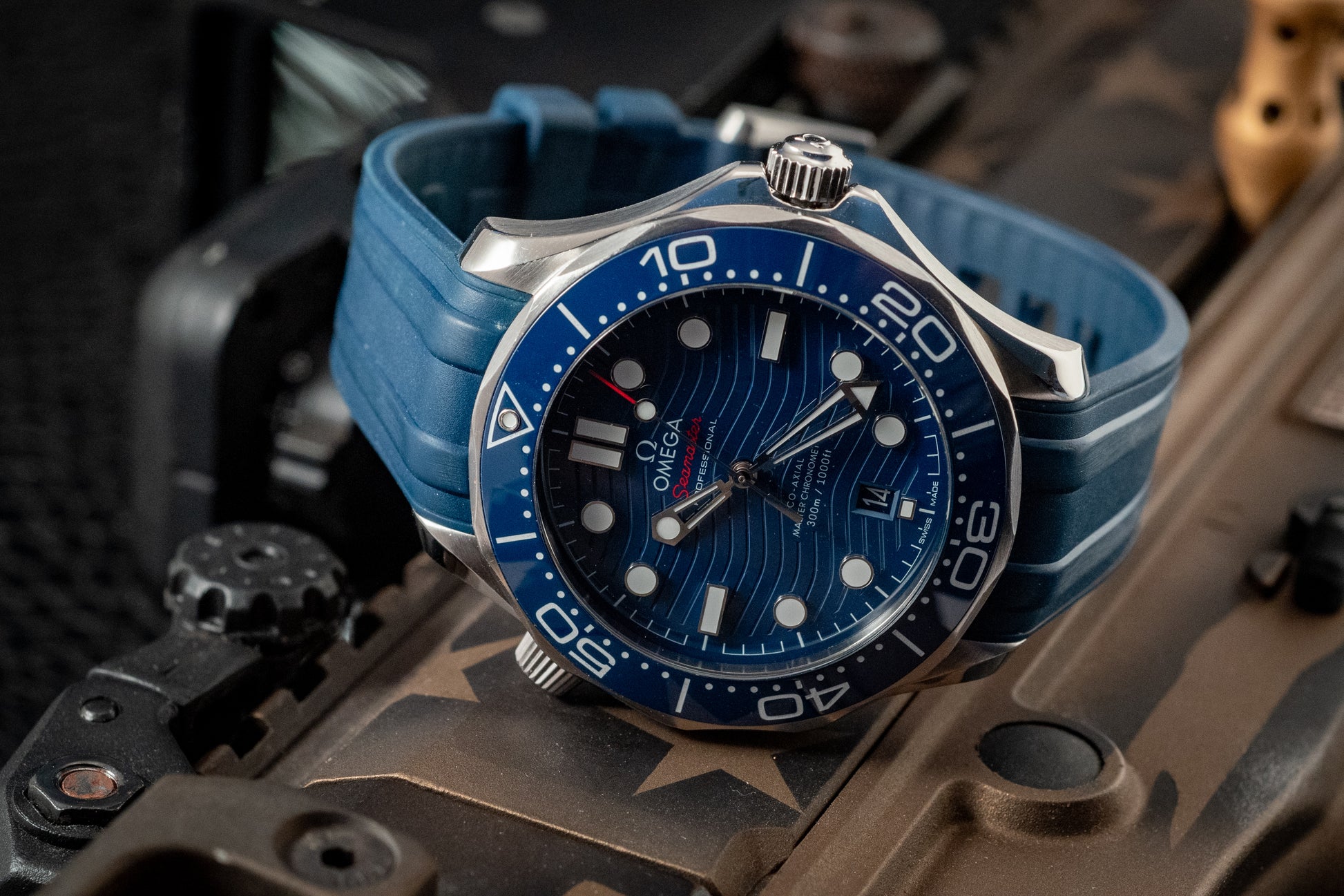 The blue rubber strap enhances the watch’s sporty and modern feel, delivering excellent comfort and a secure fit for both diving and daily wear. With a water resistance of 300 meters (1,000 feet), it’s a professional-grade diver’s watch built to perform under pressure.