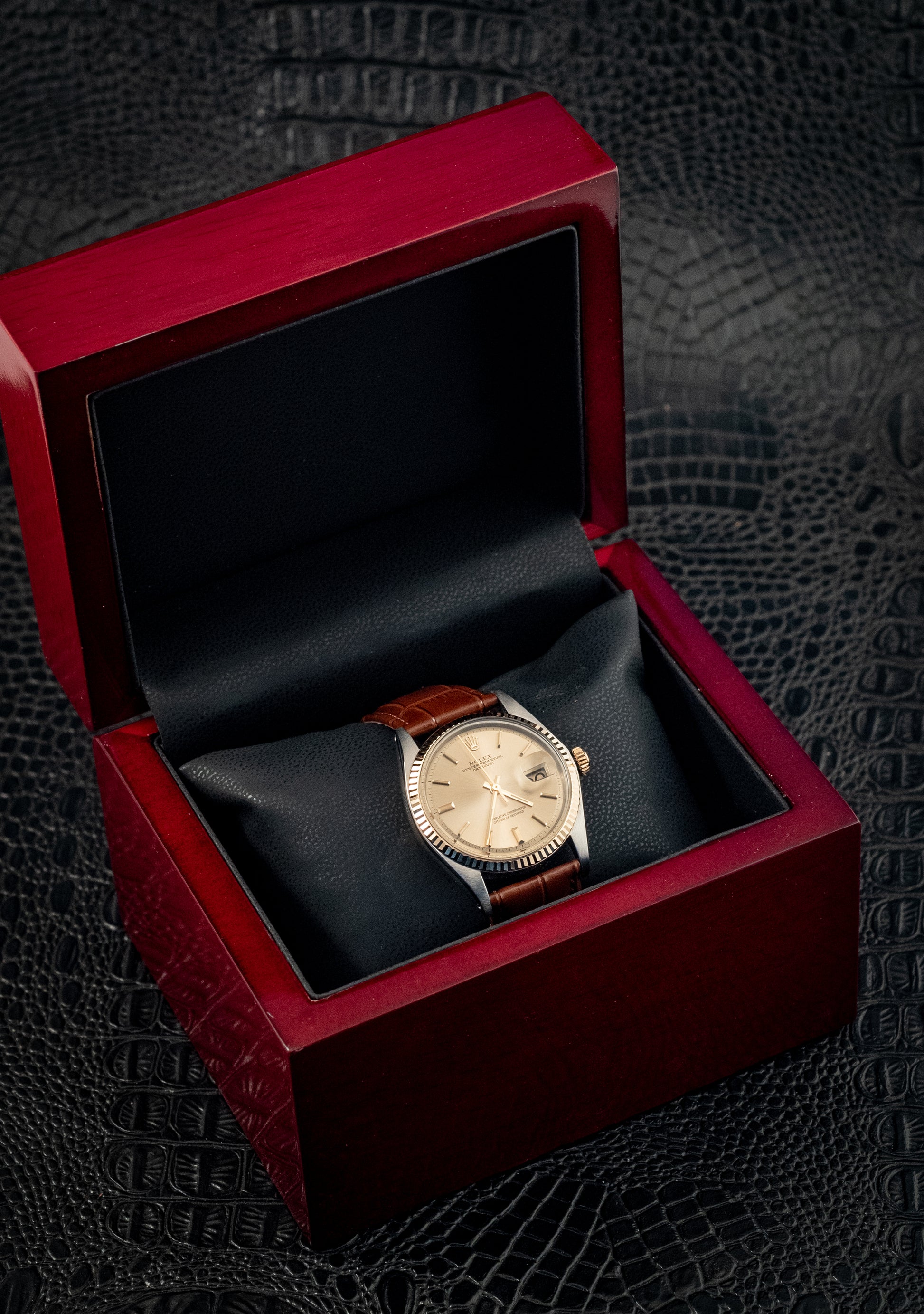 Classic Rolex elegance with just the right amount of vintage charm. This Rolex Datejust Ref. 1601 features the iconic two-tone 14K yellow gold and stainless steel case, paired beautifully with a warm champagne dial that delivers timeless sophistication. The signature fluted yellow gold bezel adds depth and unmistakable Rolex presence, while the acrylic crystal keeps that true vintage character intact.