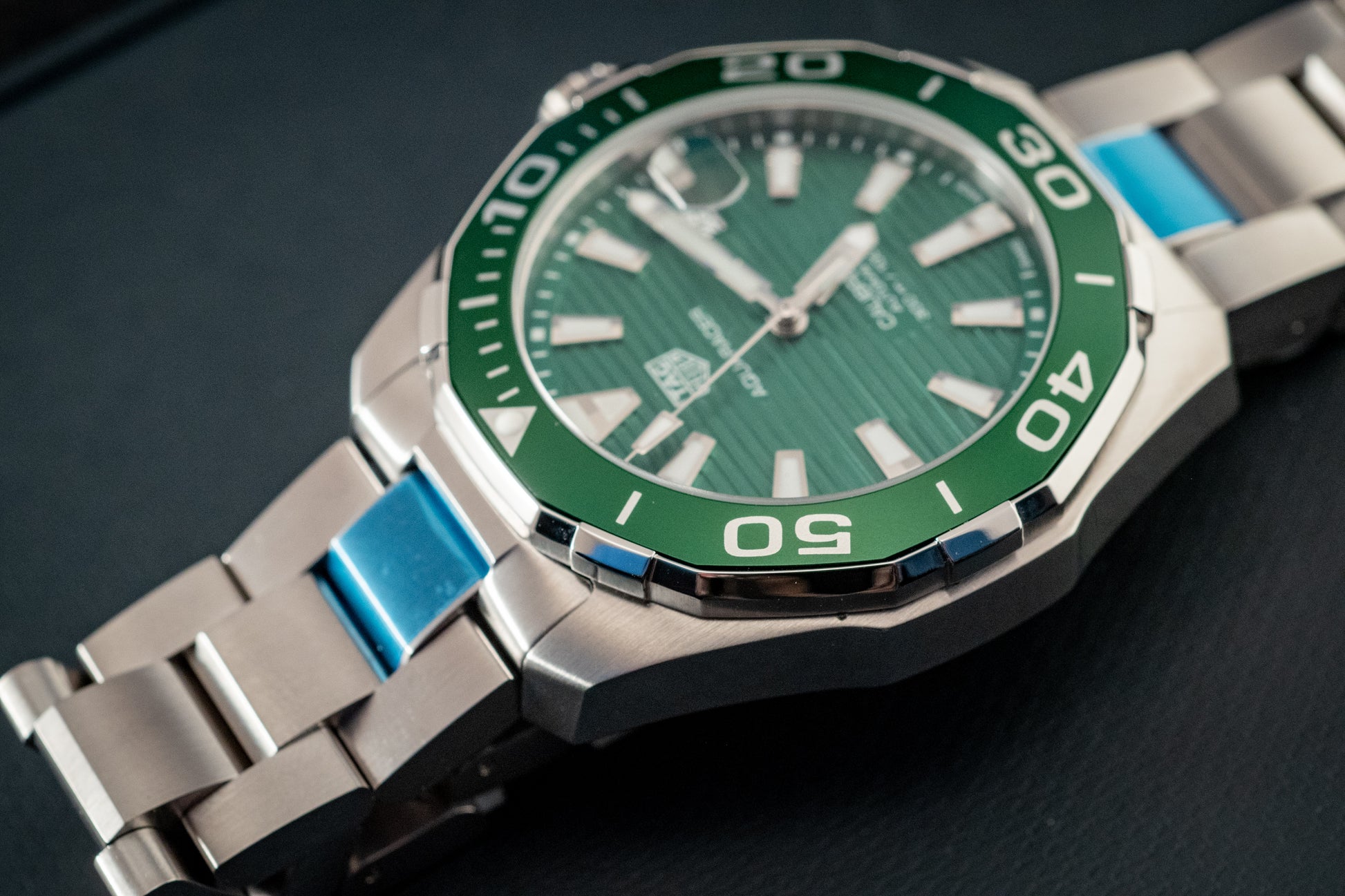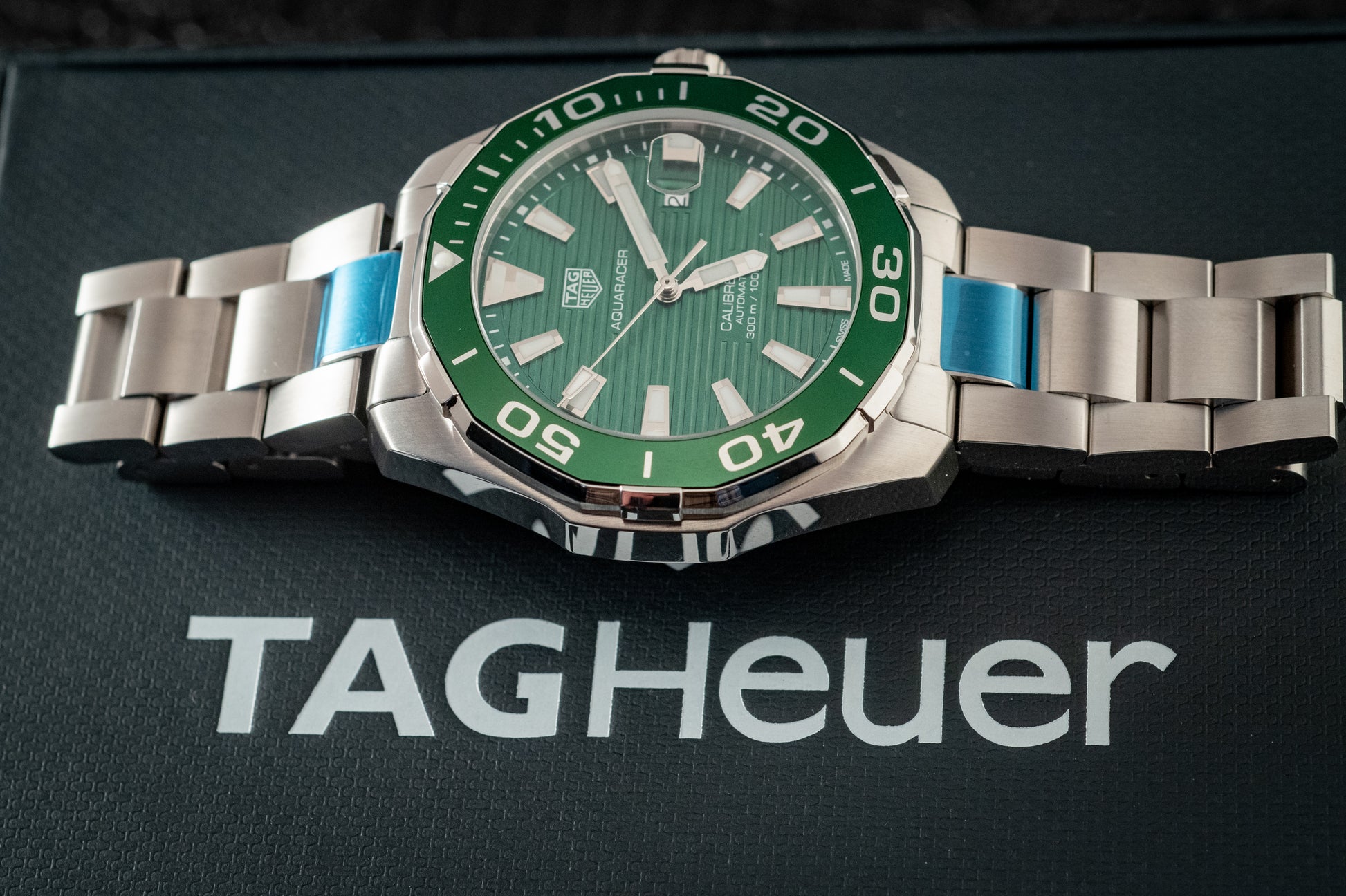 TAG Heuer Aquaracer 300M Green Stripes Box And Papers Ref WAY201S.BA0927