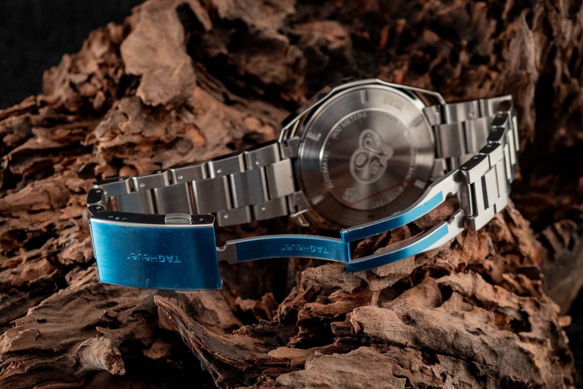 Powering this timepiece is the reliable TAG Heuer Calibre 5 automatic movement, offering a smooth sweep of the seconds hand and dependable timekeeping with a 38-hour power reserve. The screw-down crown and sapphire crystal enhance durability, while the 300-meter (1,000-foot) water resistance rating makes it a true diver’s companion.